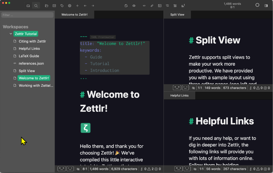 마크다운 기반 노트앱, 제틀러(Zettlr).