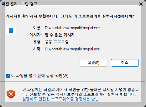매번 확인 안하려면 아래 '항상확인' 체크를 없애면 된다.