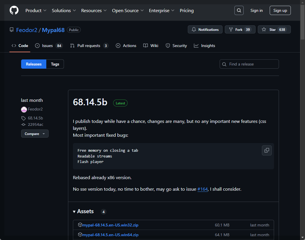 다운로드: https://github.com/Feodor2/Mypal68/releases