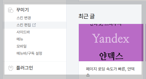 2. 화면 왼쪽. 스크롤을 내리면 '스킨 편집' 이 있다. 클릭.