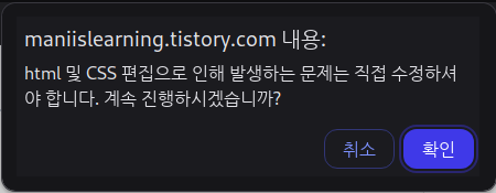 4. 브라우저에 경고 메세지가 뜬다. 동의하면 '확인'