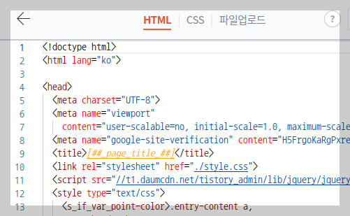 이번에는 HTML 을 수정한다. 'HTML' 탭을 먼저 누르고