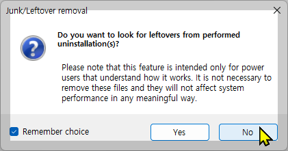 나머지 정크파일도 찾아서 지울까? No 를 선택해도 문제없다.